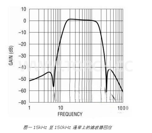高通濾波器的截止范圍為 6.7kHz 至 100kHz,而低通濾波器則為 66.7kHz 至 1MHz。最佳濾波器帶寬設(shè)置可以透過一種軟件算法來調(diào)節(jié),而且是數(shù)據(jù)頻率、數(shù)據(jù)速率和編碼的函數(shù)。濾波器帶寬必須足夠窄,以最大限度地?cái)U(kuò)大 ADC 輸入的動(dòng)態(tài)范圍,同時(shí)又必須足夠?qū)挘员Wo(hù)訊號(hào)躍變和脈沖寬度 (正確的濾波器設(shè)置確保可靠的 DSP 卷標(biāo)訊號(hào)檢測)。