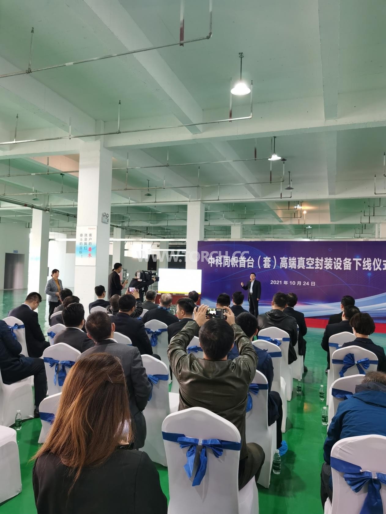 在這個(gè)重要時(shí)刻,泰興市委常委、組織部部長馮海鏞,泰興市科學(xué)技術(shù)局局長丁曉江,泰興高新區(qū)黨工委書記陳斌,泰興高新區(qū)黨工委副書記、管委會(huì)主任蔣杰,泰興高新區(qū)黨工委副書記徐輝、中關(guān)村協(xié)同創(chuàng)新投資基金總經(jīng)理孫次鎖,北京航空航天大學(xué)物理學(xué)院物理系主任郝維昌教授,北京航空航天大學(xué)物理學(xué)院杜軼教授,中國兵器214所李杰教授,武漢理工大學(xué)任龍教授,國內(nèi)封測(cè)領(lǐng)域前三的封測(cè)廠技術(shù)專家、來自全國各地的行業(yè)專家和中科同志的客戶代表一行數(shù)十人共同出席了這次下線儀式。